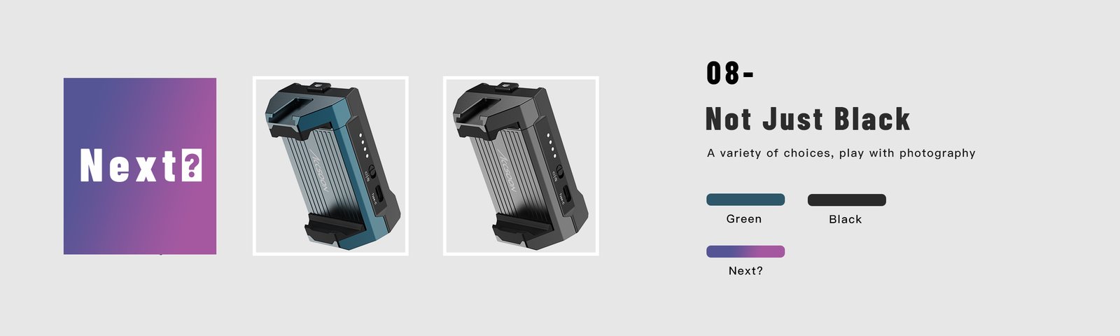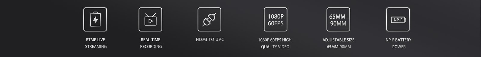 • Powers Android phone and accessories via NP-F battery support with dual DC outputs