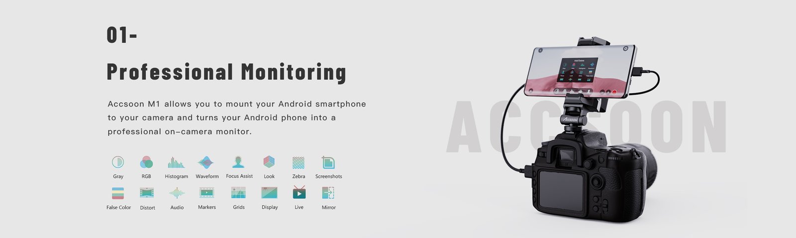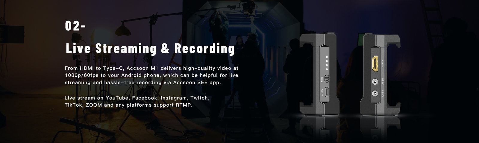 The Accsoon M1 is a versatile HDMI-to-USB-C monitor adapter that turns your Android smartphone into a professional on-camera display with live preview, streaming, and recording capabilities.