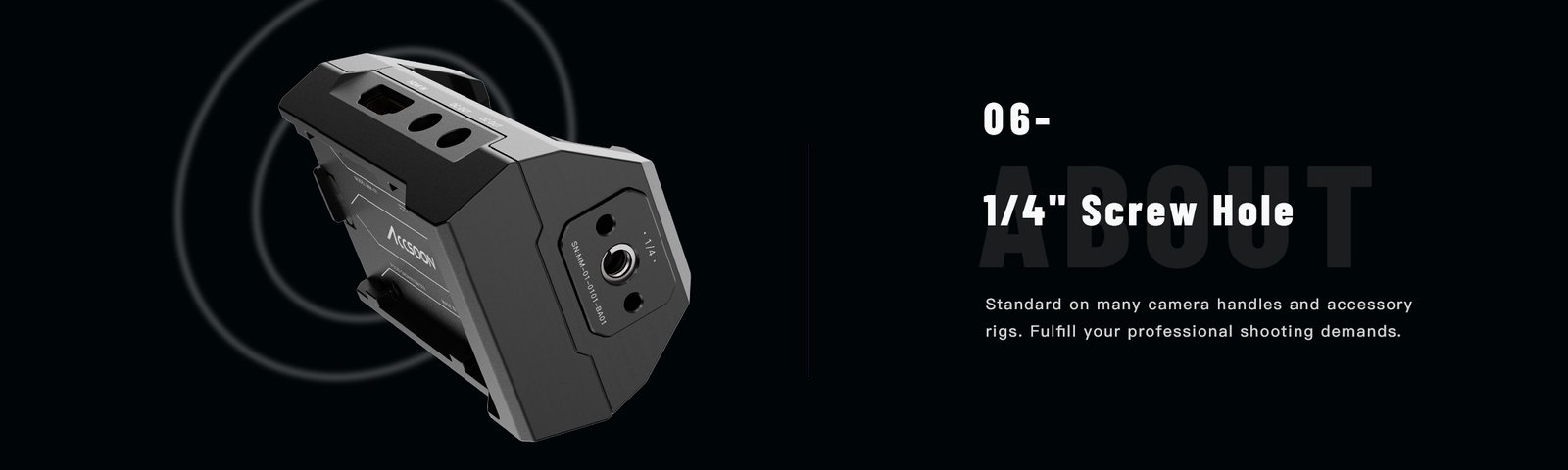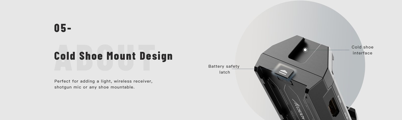 • Cold shoe mount and 1/4″ screw hole for camera rig integration