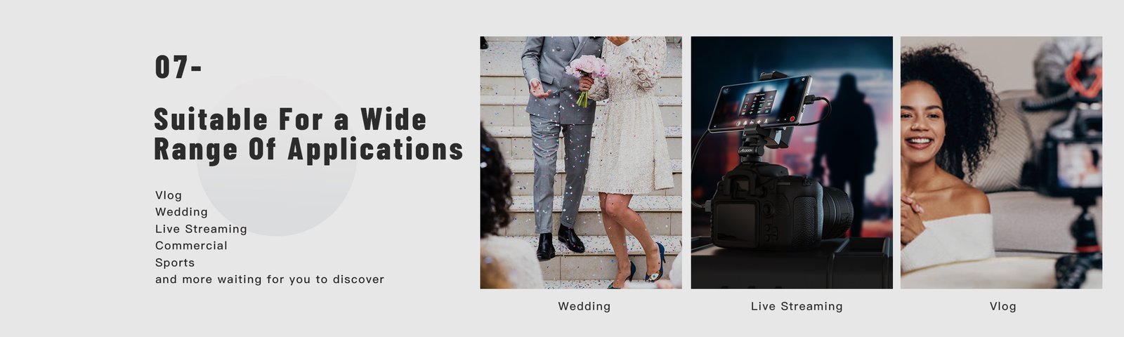 • Ideal for vlogging, weddings, livestreams, tutorials, and mobile production