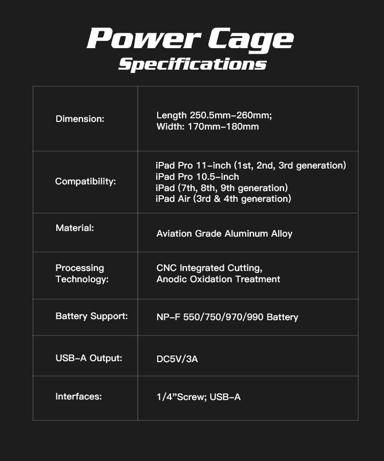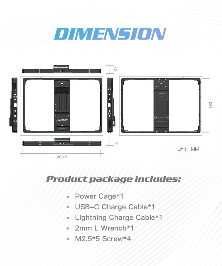 | In the Box | Power Cage ×1 USB-C Charge Cable ×1 Lightning Charge Cable ×1 2mm L Wrench ×1 M2.5*5 Screw ×4 |