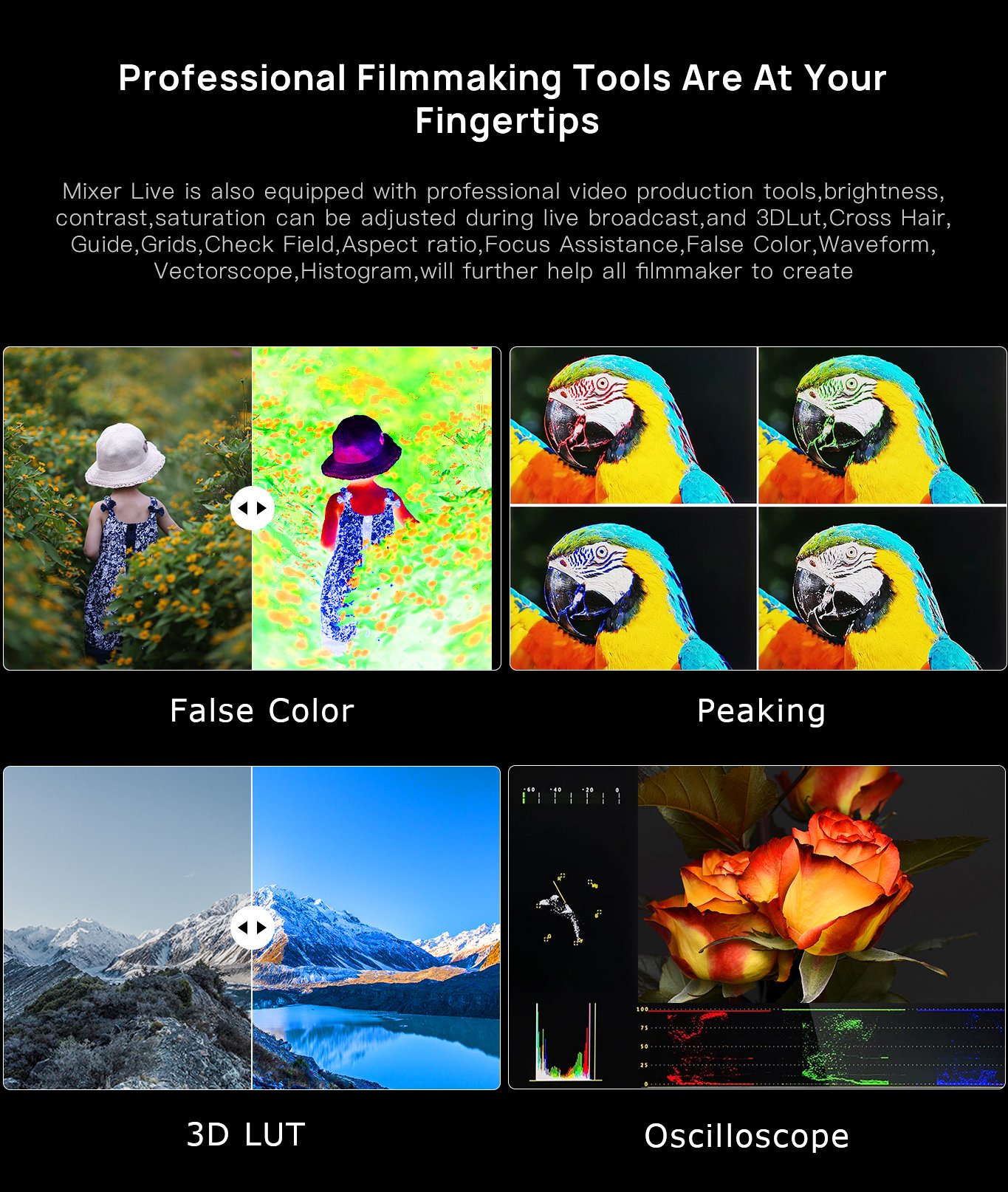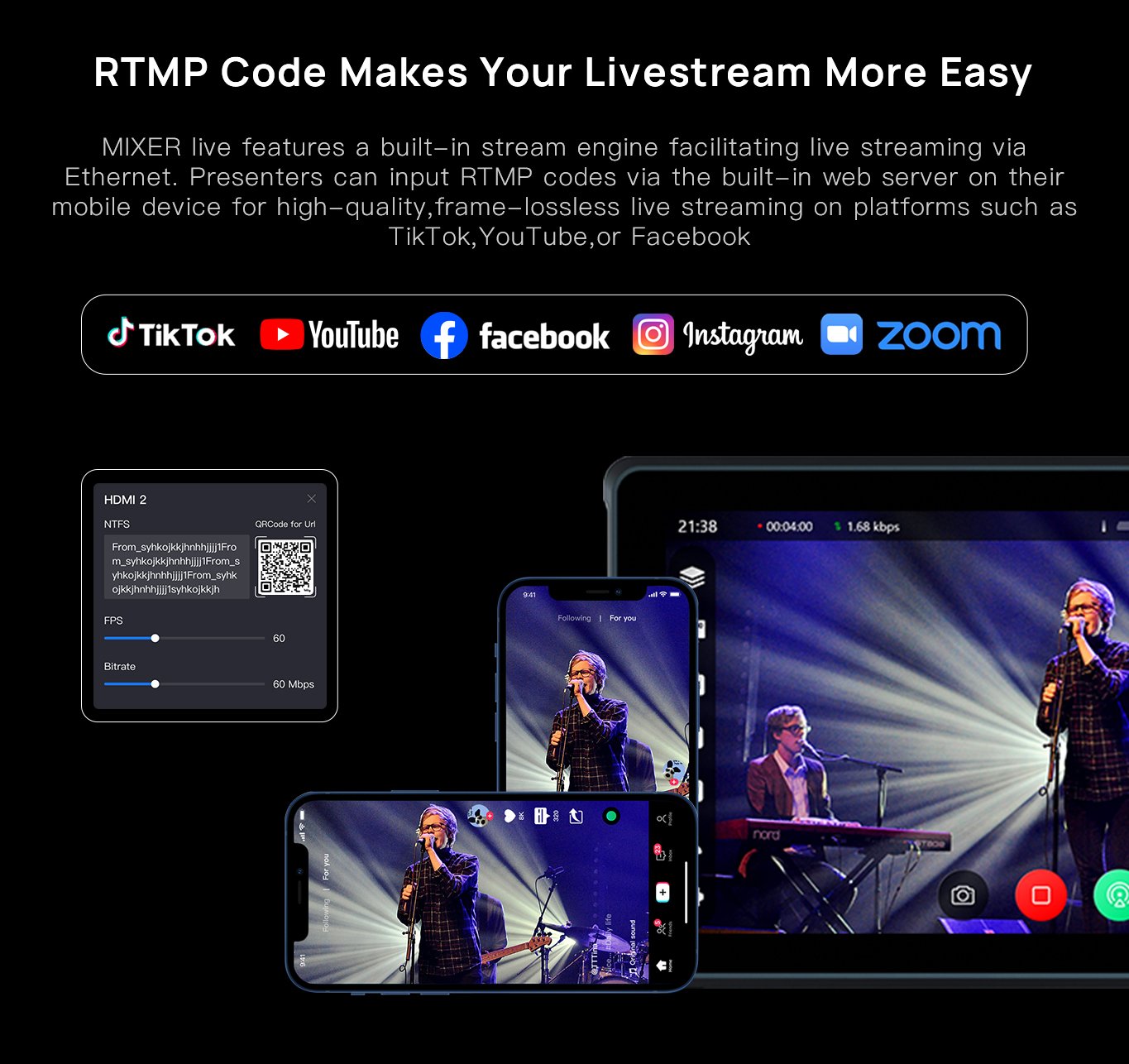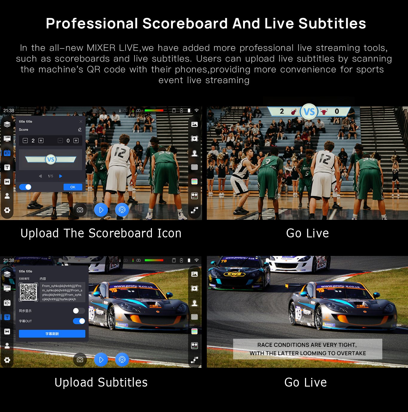 The CineTreak Mixer Live 2 is a portable all-in-one 4K HDMI live streaming and recording switcher that brings professional broadcast tools — such as touchscreen control, PTZ camera support, vertical streaming, subtitles/scoreboard, and visual effects — into a compact livestreaming hub for creators, filmmakers, and content producers.