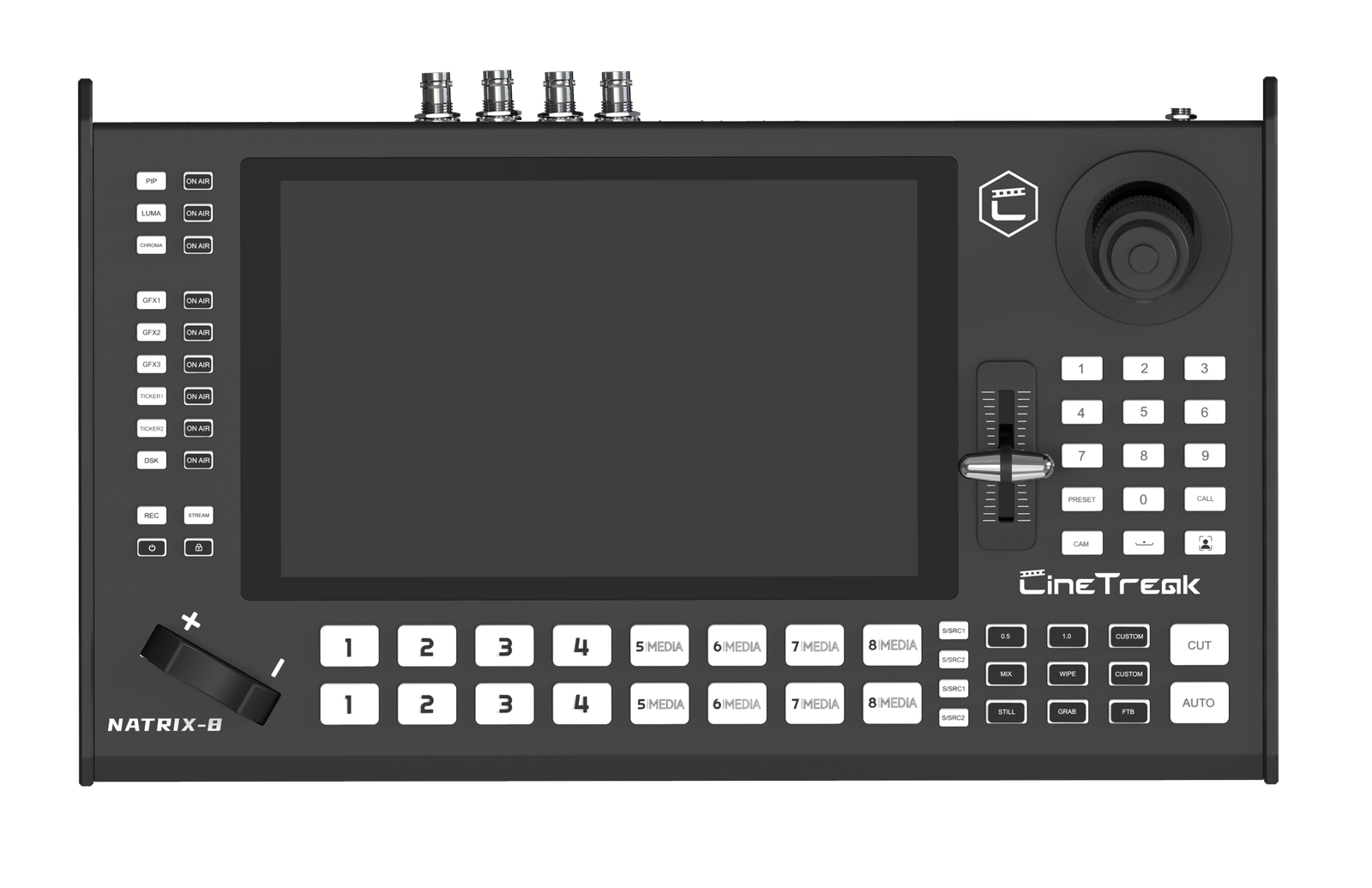 The CineTreak NATRIX-8 is a high-end broadcast video switcher built for professional multi-camera live production. Featuring an integrated large display, T-bar transition control, advanced keying, media playback, and real-time streaming functions, it delivers studio-grade switching for concerts, sports, houses of worship, education, TV production, and corporate events.