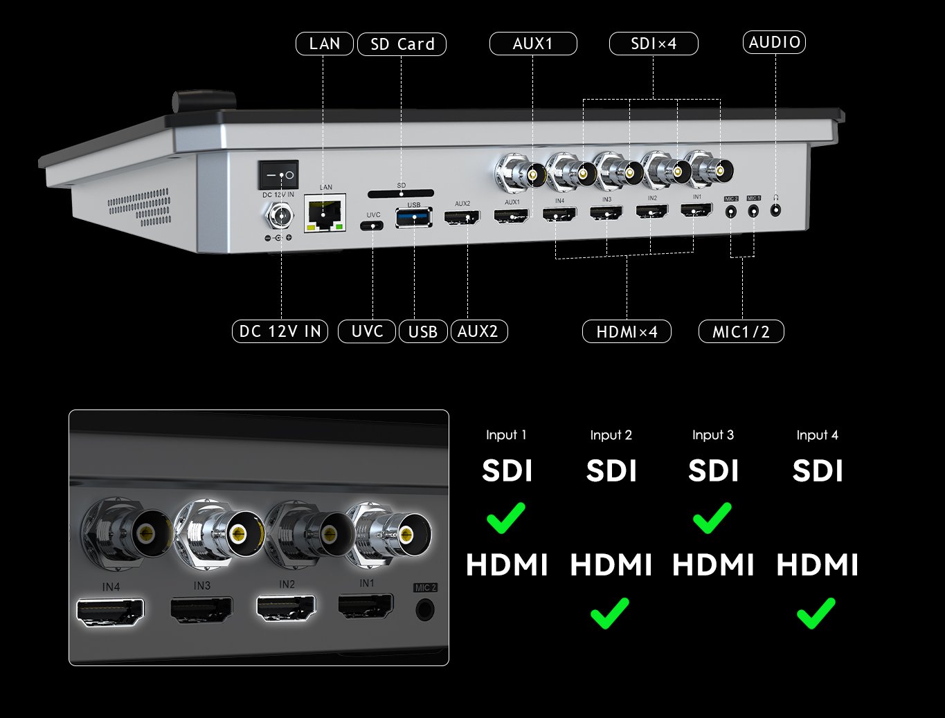 • Supports 4 HDMI and 4 SDI inputs with flexible configuration