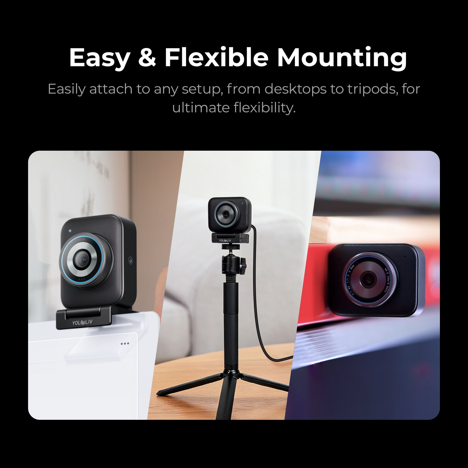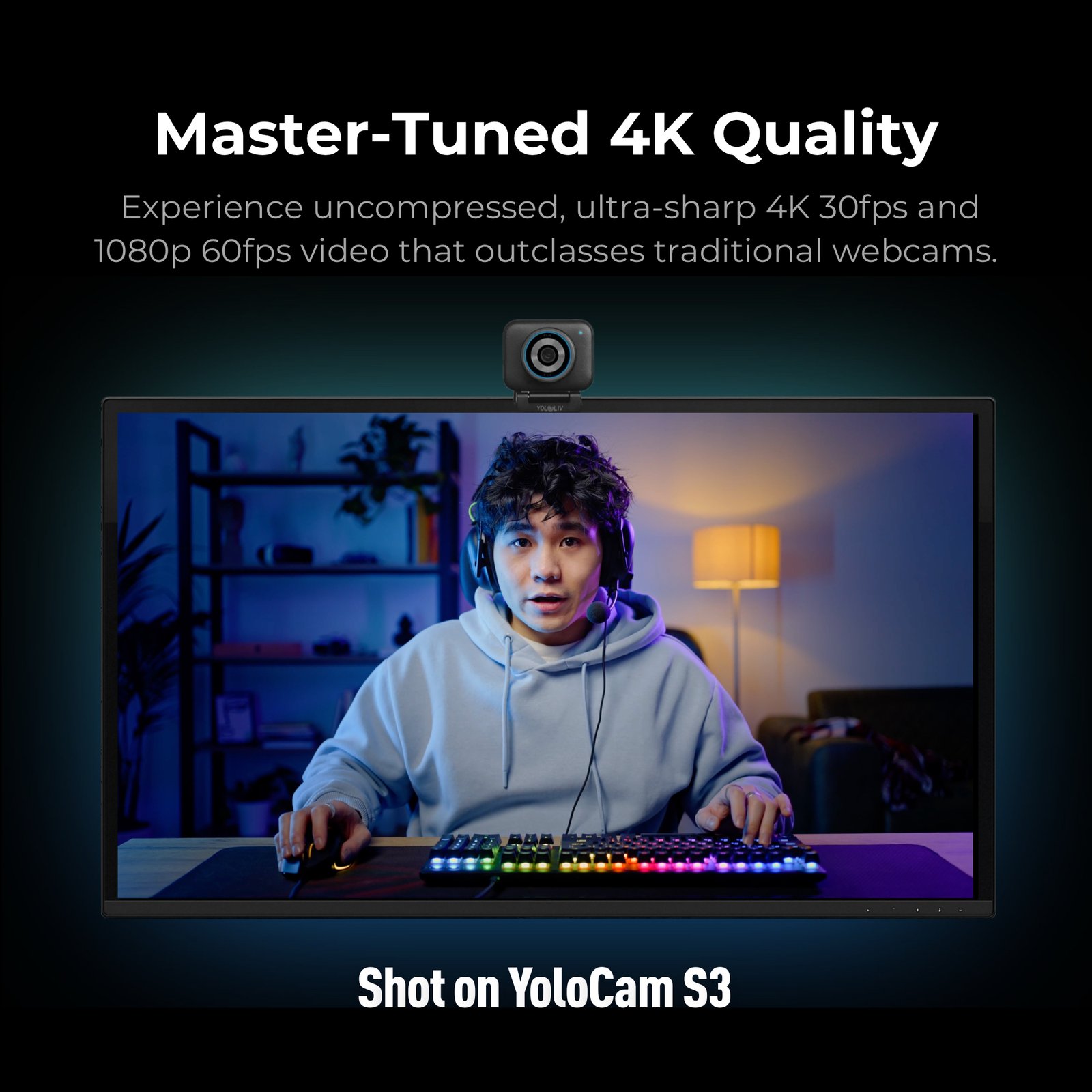 Tags: 1/1.3 CMOS sensor, 24mm equivalent lens, 4K live streaming webcam, 4K30 webcam, 50MP webcam, AI powered webcam, AI tuning webcam, content creator webcam, digital zoom 4x, f1.85 aperture camera, HDR webcam, low light webcam, MJPEG H.264 webcam, PDAF autofocus webcam, professional streaming camera, USB webcam 4K, video conferencing camera, wide angle 82 degree FOV, YoloLiv YoloCam S3